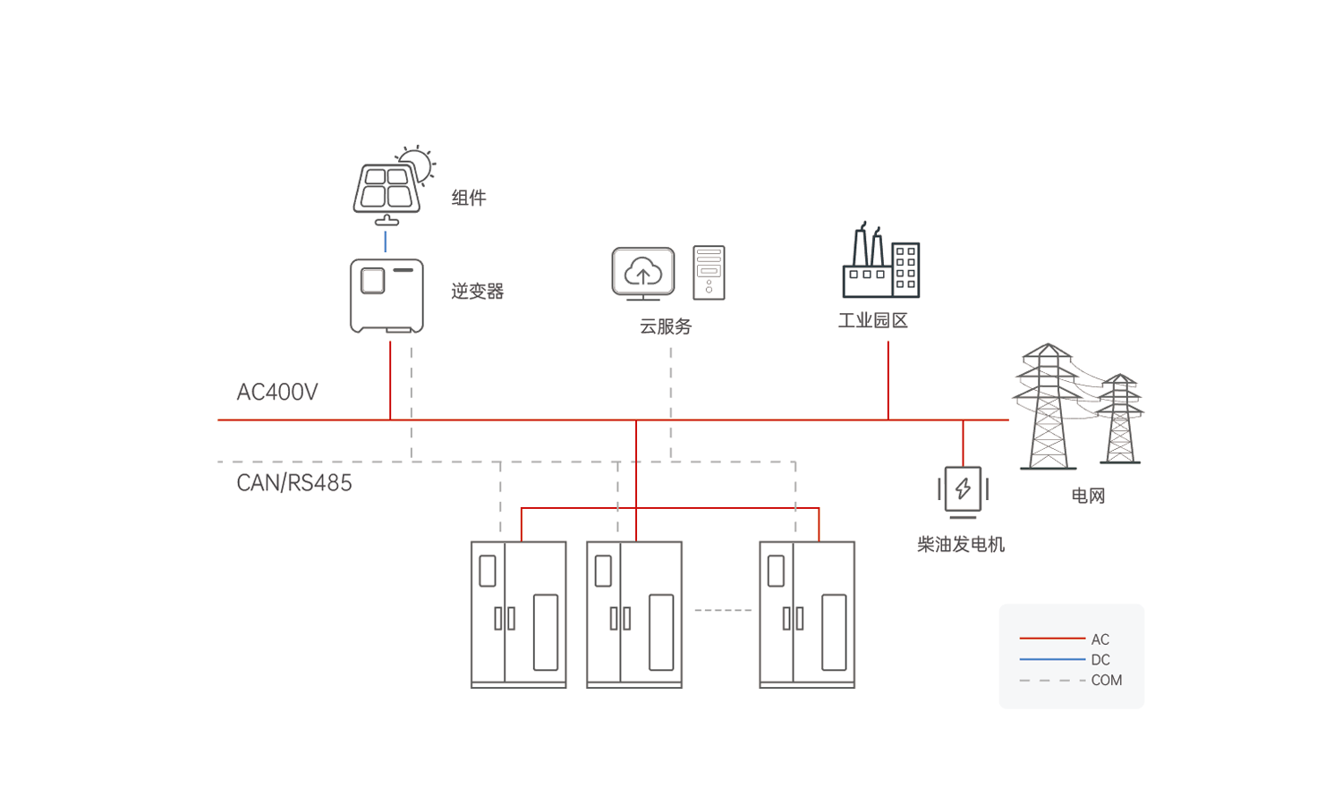 工商业储能系统利用锂电池作为储能装置,通过本地及远端EMS管理系统,完成电网、电池、负载三者之间的电能提供和需求的平衡与优化,并能方便接入光伏等新能源设备,在峰谷用电、配网增容、用电安全、提升用电质量等方面带来应用价值。广泛应用于商业综合体、工厂、医院、数据中心等场景。